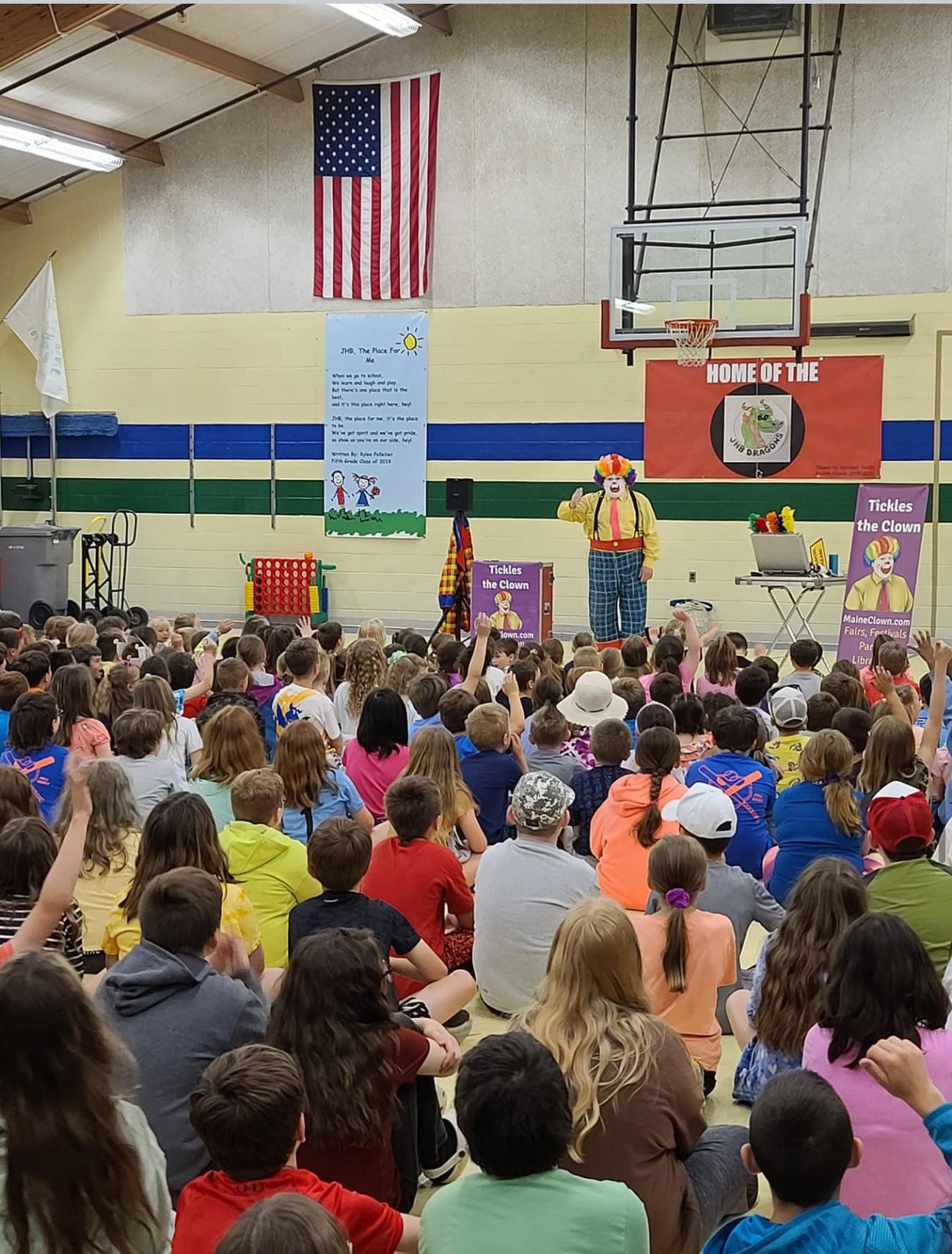 The clowntastic Assembly Package includes 2 of the same assembly shows in the same day, Teacher Guides, travel within 50 miles of Waterville, ME.